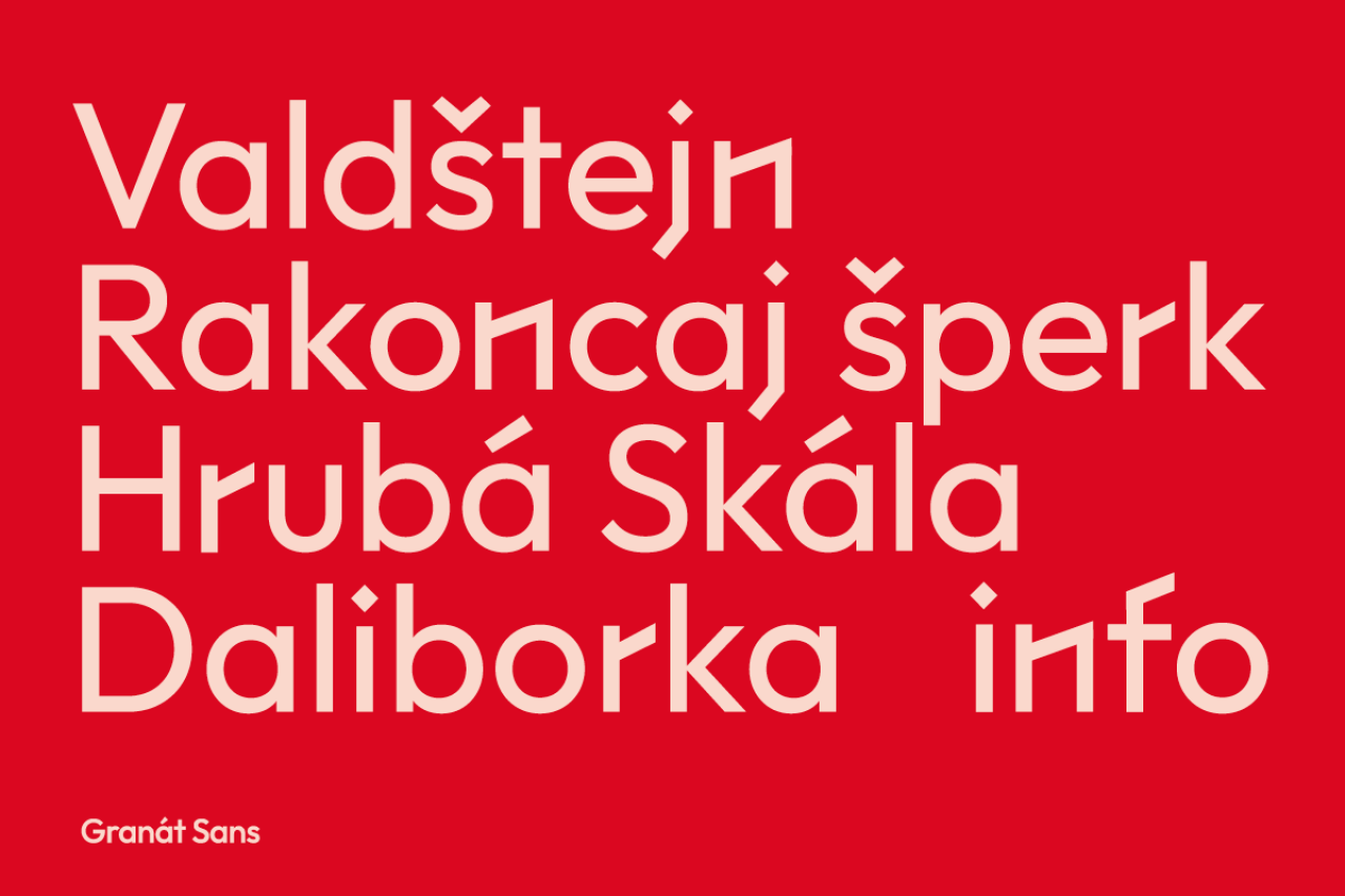 Klíčovým prvkem celého návrhu je typografické logo používající na míru upravené písmo Granát Sans písmařem Janem Charvátem ze studia RenegadeFonts.